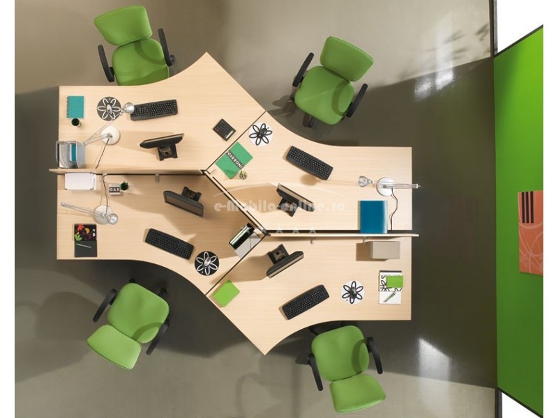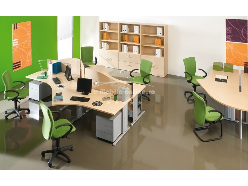 Prin biroul operational e-MO-18, designul organic poate intra in spatiul oficial al unei intitutii/firme. Corpurile mobile ofera spatiul de depozitare necesar. Structurile metalice dau un aspect modern. Activitatea se poate desfasura in intimitatea ofertia de parapetele de pe blaturile de lucru. Se poate realiza pe orice combinatie de culori.
